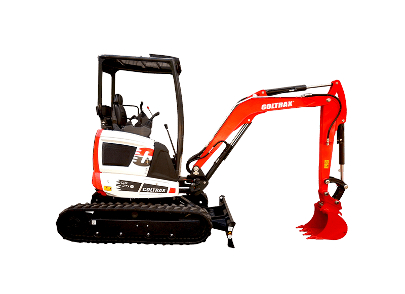 Retour COLTRAX CX25 Caractéristiques techniques Mini pelle 2.5tPoids : 2 410 – 2540 KgMoteur : YANMAR 3TNV76